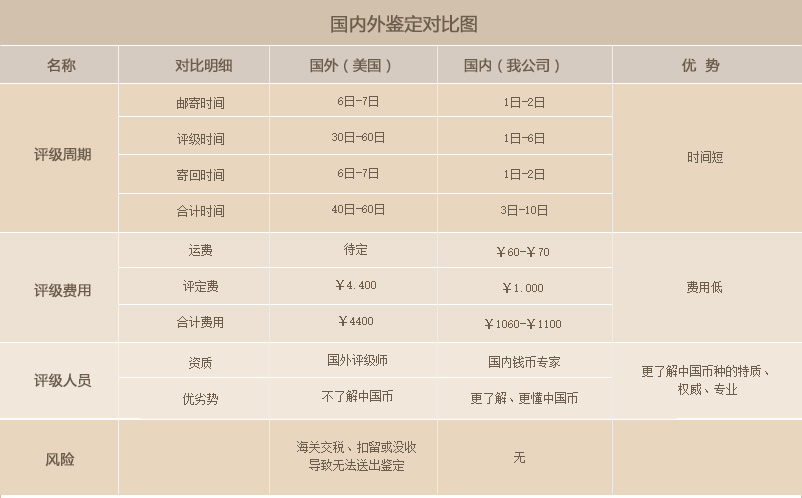 公司錢幣鑒定的業務范圍包括古錢、銀錠、金銀幣、銅幣、鎳幣,尤以清代民國金銀幣,紙幣,現代金銀幣、一、二、三版人民幣的鑒定為特色業務。公司秉承公正、公平、公開原則,結合中國錢幣自身工藝特點,由國內各個幣種的專家團隊進行鑒定和評級,并鄭重承諾對公司錯誤的鑒定承擔全部賠償責任,在保護您的藏品,提高錢幣的收藏價值的同時,勵志打破傳統的信用危機,使我司成為大家信任的第三方。
